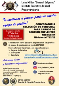 CONVOCATORIA CARGO GESTION SUPLENTE-2027-29